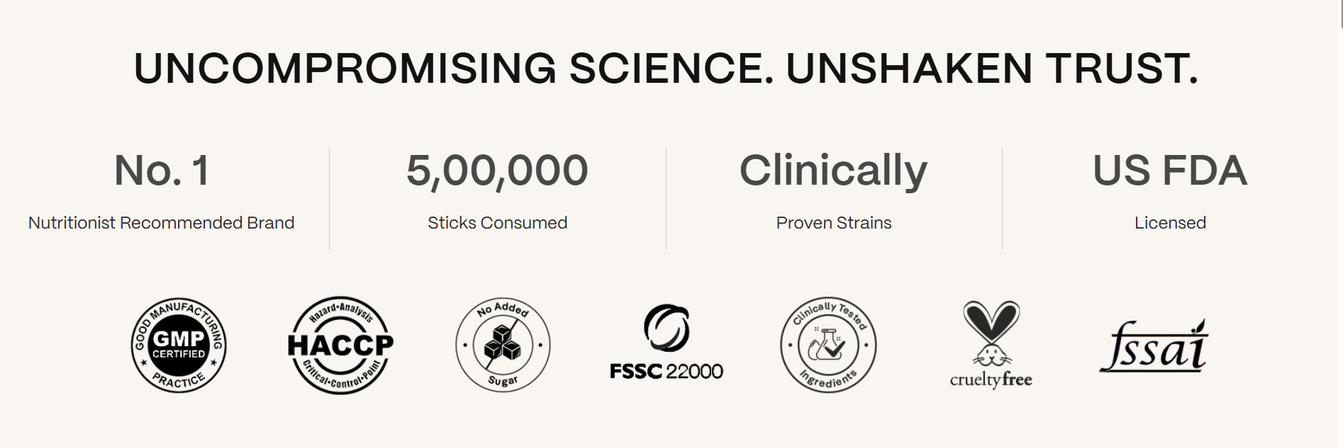 A holistic combination of Pre + Pro + Post Biotics that maximizes performance.